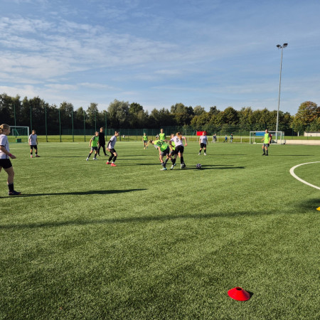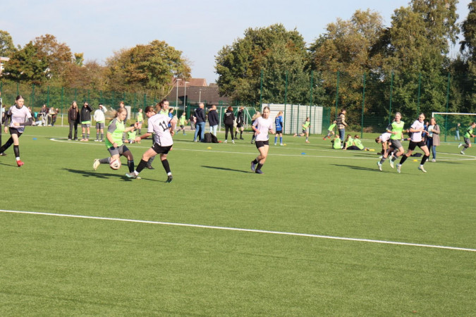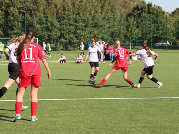 In vorbereitenden Trainingsspielen hatten die Mädchen sich spieltechnisch besser kennengelernt. Aber im ersten Spiel gegen das Gymnasium Sögel wollte der Ball einfach nicht im Tor landen. Nach einer kleinen Spielpause sprang der Funke dann über. Tolle Spielszenen waren angesagt, die zwar nicht immer zum Torerfolg führten, uns aber einen Sieg gegen das Gymnasium Dörpen einbrachte. Das anschließende Spiel gegen das Mariengymnasium Papenburg endete mit einem Unentschieden.