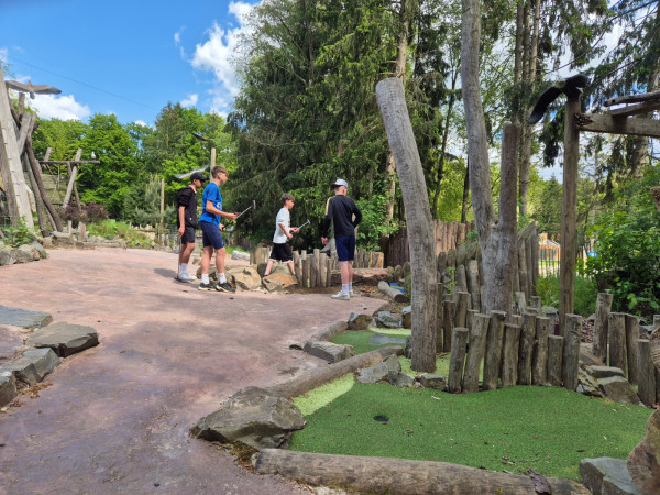 Montag: Nach Ankunft und Eingewöhnungsphase trafen wir uns bei einer Partie Minigolf. Es war ganz schön schwierig, die Löcher zu treffen.