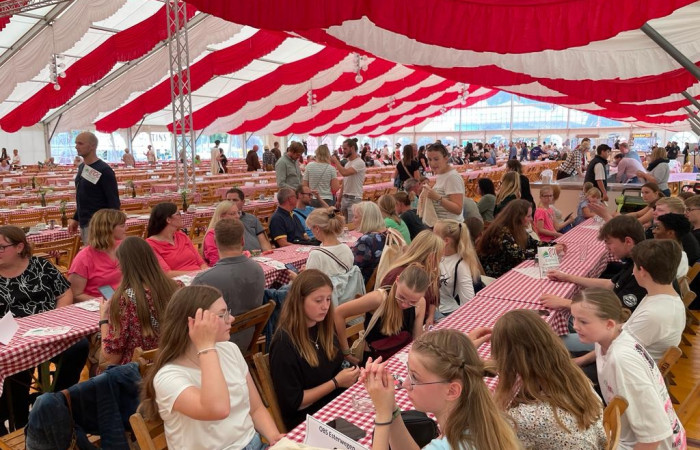 Gemeinsam marschierten wir ins Festzelt und alle freuten sich an vorab reservierten Plätzen auf ein Freigetränk, bevor es dann für die Kinder zu den Fahrgeschäften gehen konnte.