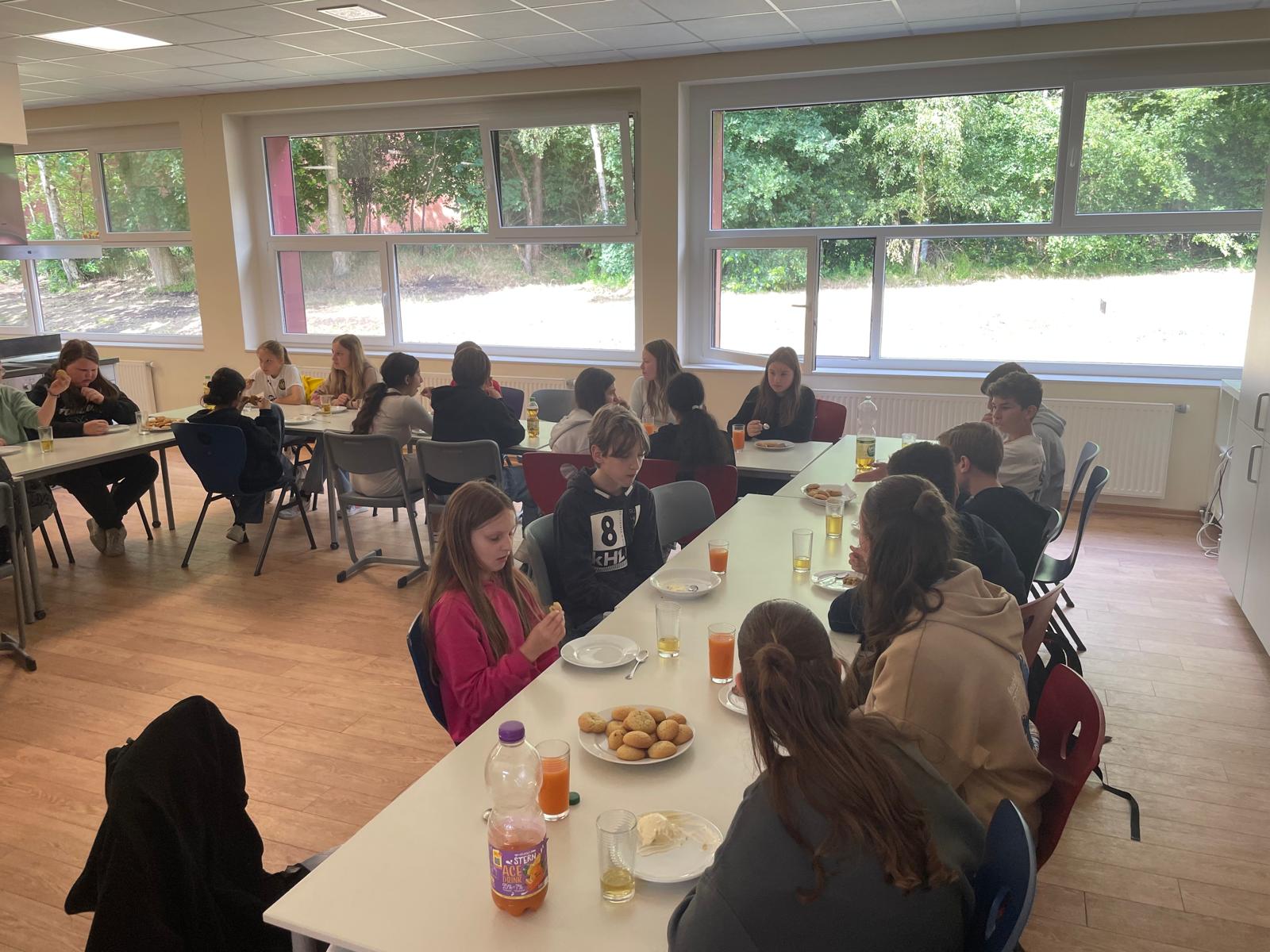 Die Englischkurse im Jahrgang 6 konnten nun zum Schuljahresende noch warme Cookies 🍪 genießen. Zuvor hatten die SuS je nach Belieben ihren Teig mit Schokodrops oder M&Ms noch leckerer gestaltet. Mit einer Kugel Vanilleeis schmeckte es allen fantastisch. Es war eine gemütliche Runde.