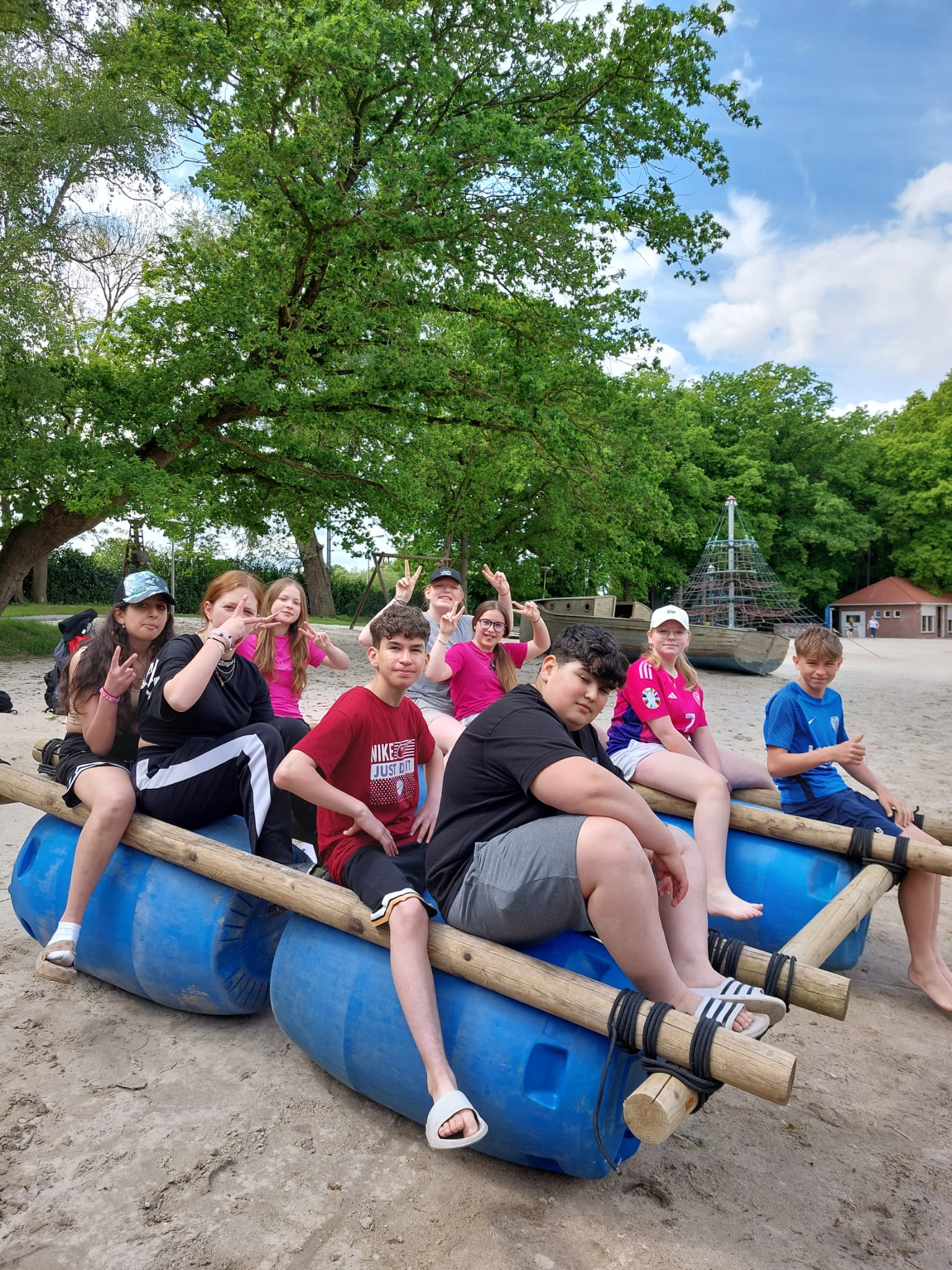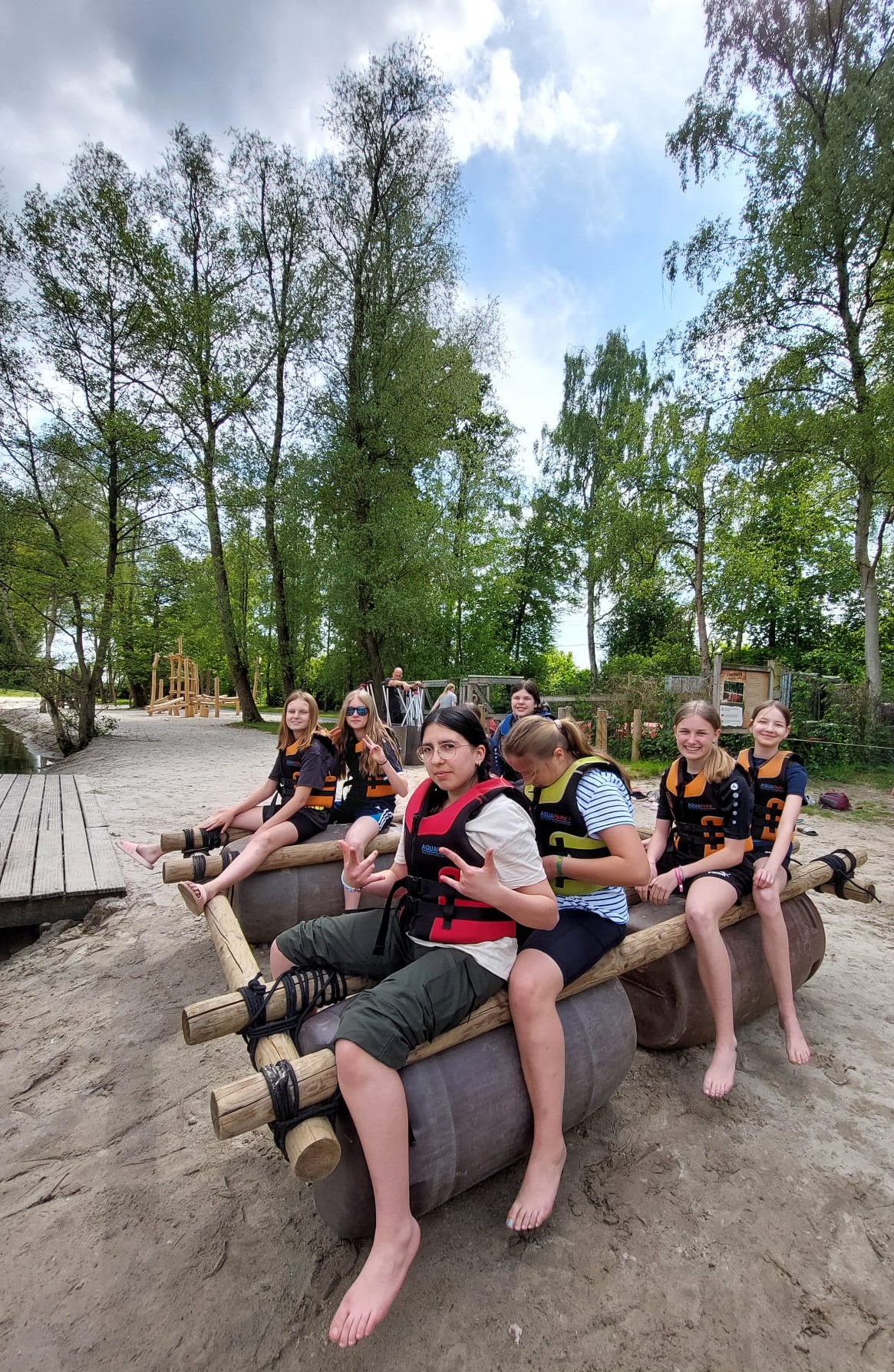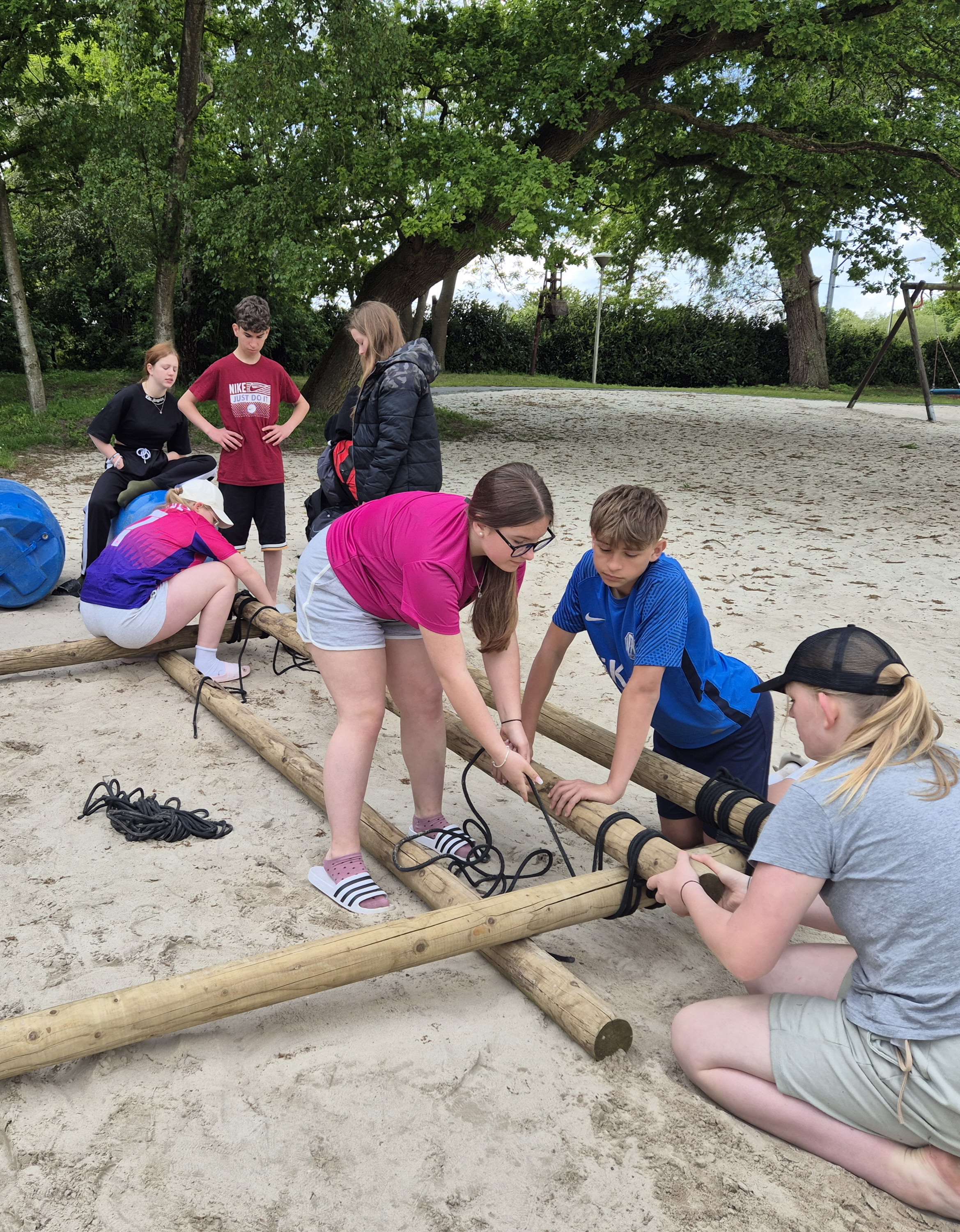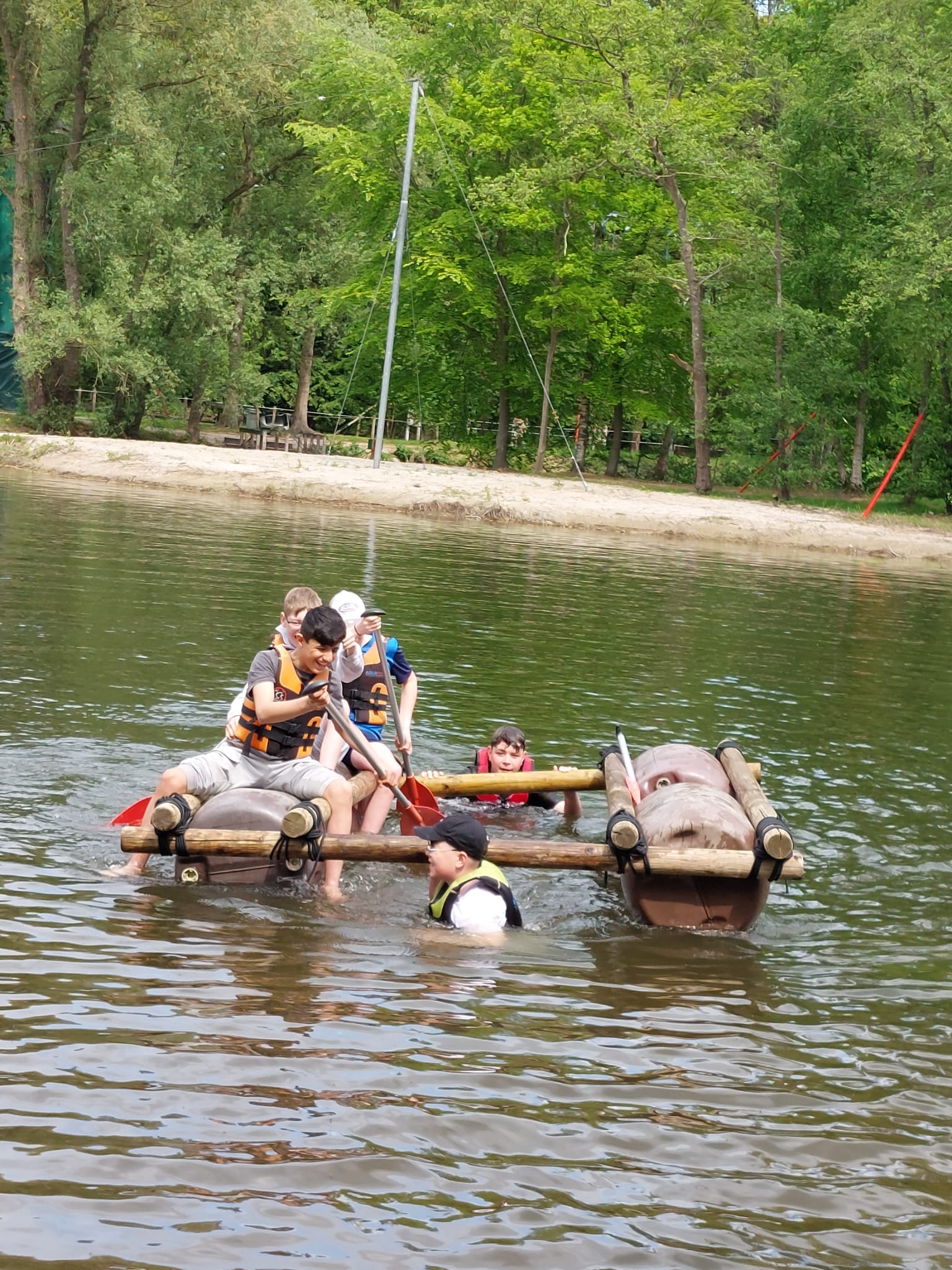 Mittwoch: Zum Kennenlernen des Campgeländes gab es erst einmal eine Schnitzeljagd. Danach ging es zum Floßbau am See im ‚Woodland‘ – eine wahre Herausforderung!