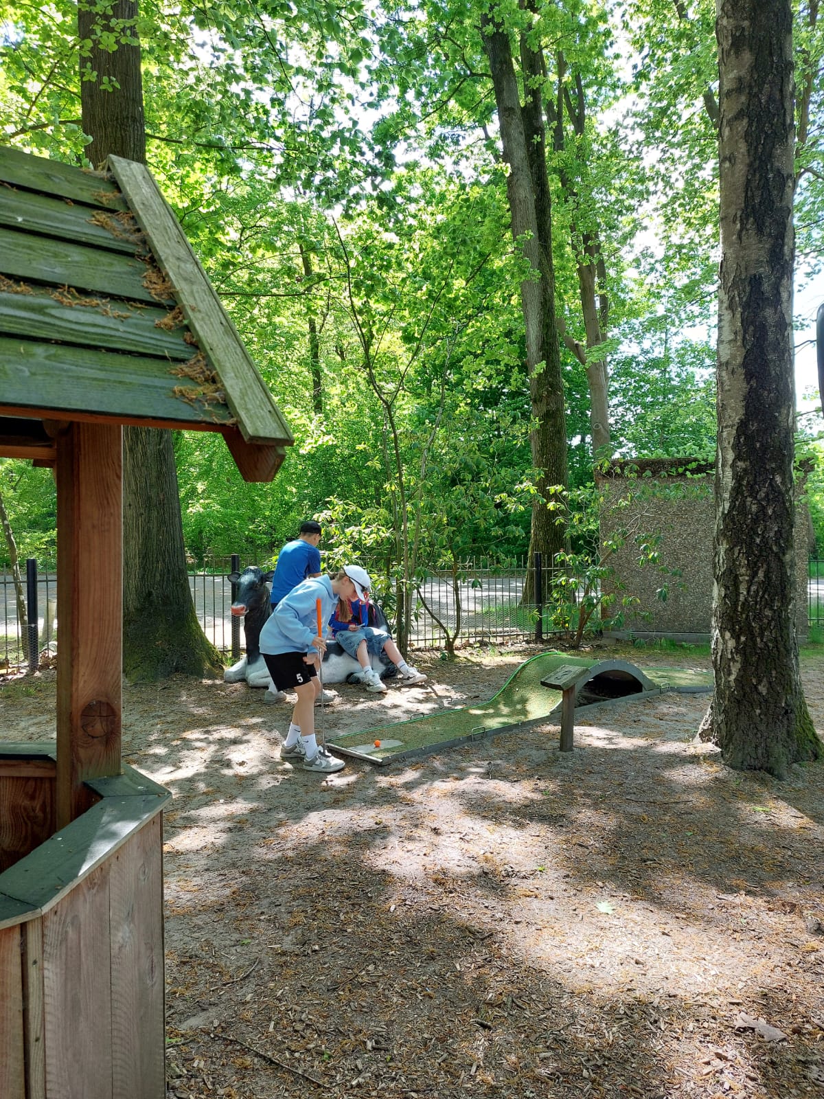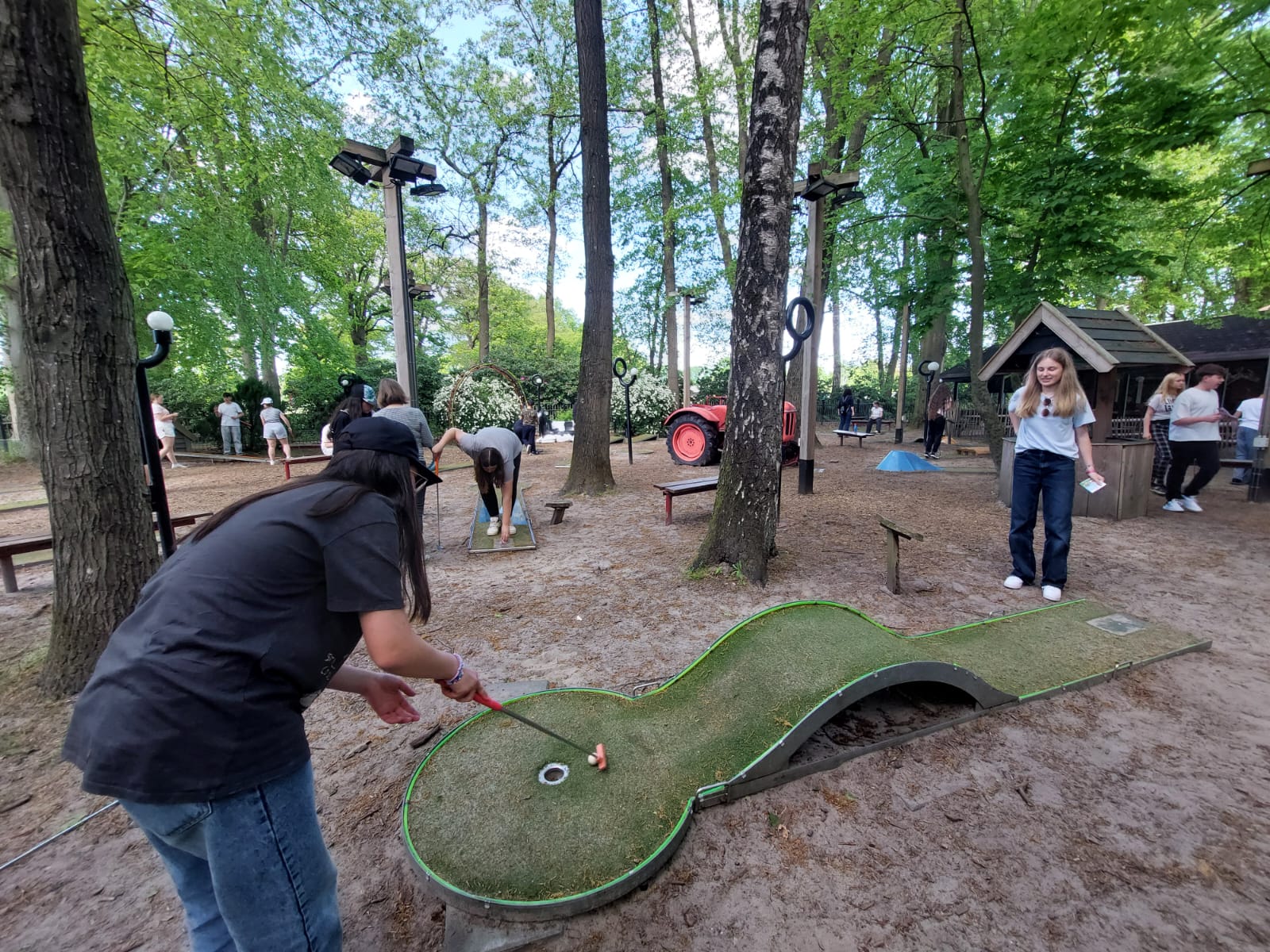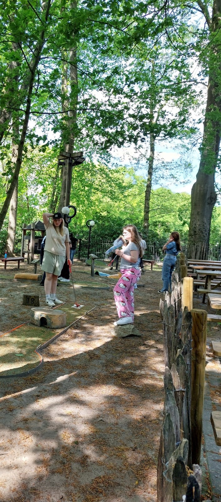Montag: Nach Ankunft und Eingewöhnungsphase trafen wir uns bei einer Partie Minigolf. Es war ganz schön schwierig, die Löcher zu treffen.