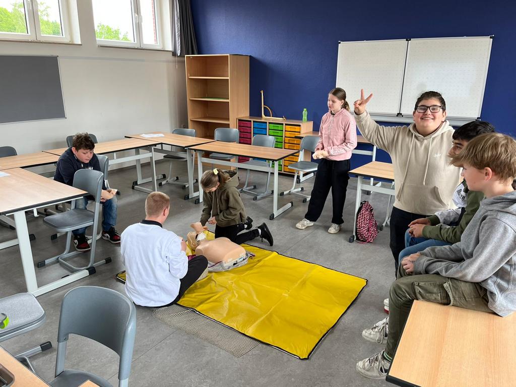 Der Malteser Hilfsdienst erklärte den Schülern wichtige Verhaltensweisen in Notfällen. Den Schülerinnen und Schülern wurden 1. Hilfe Maßnahmen beigebracht und erklärt, wie man sich in Notsituationen verhält.
