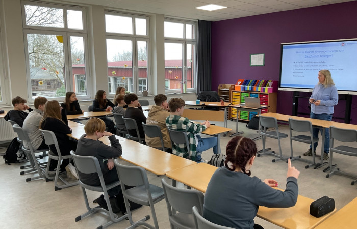 Die 7. Klassen der Oberschule Esterwegen haben diese und andere Fragen behandelt. In Kooperation mit Frau Vinke von der Polizei Papenburg sollten die Klassen 7a, 7b und 7c bei der Veranstaltung für das Thema Zivilcourage sensibilisiert werden.