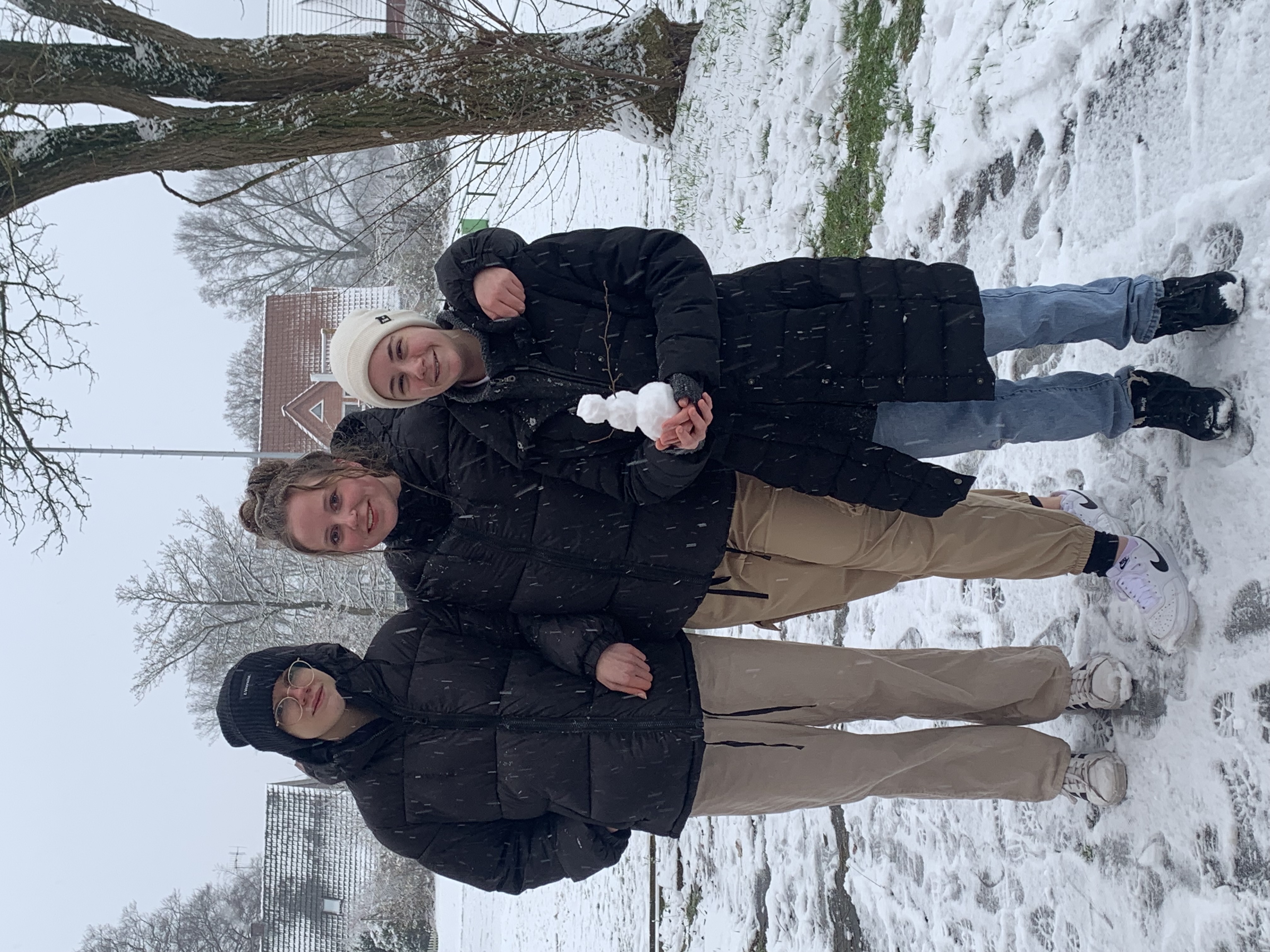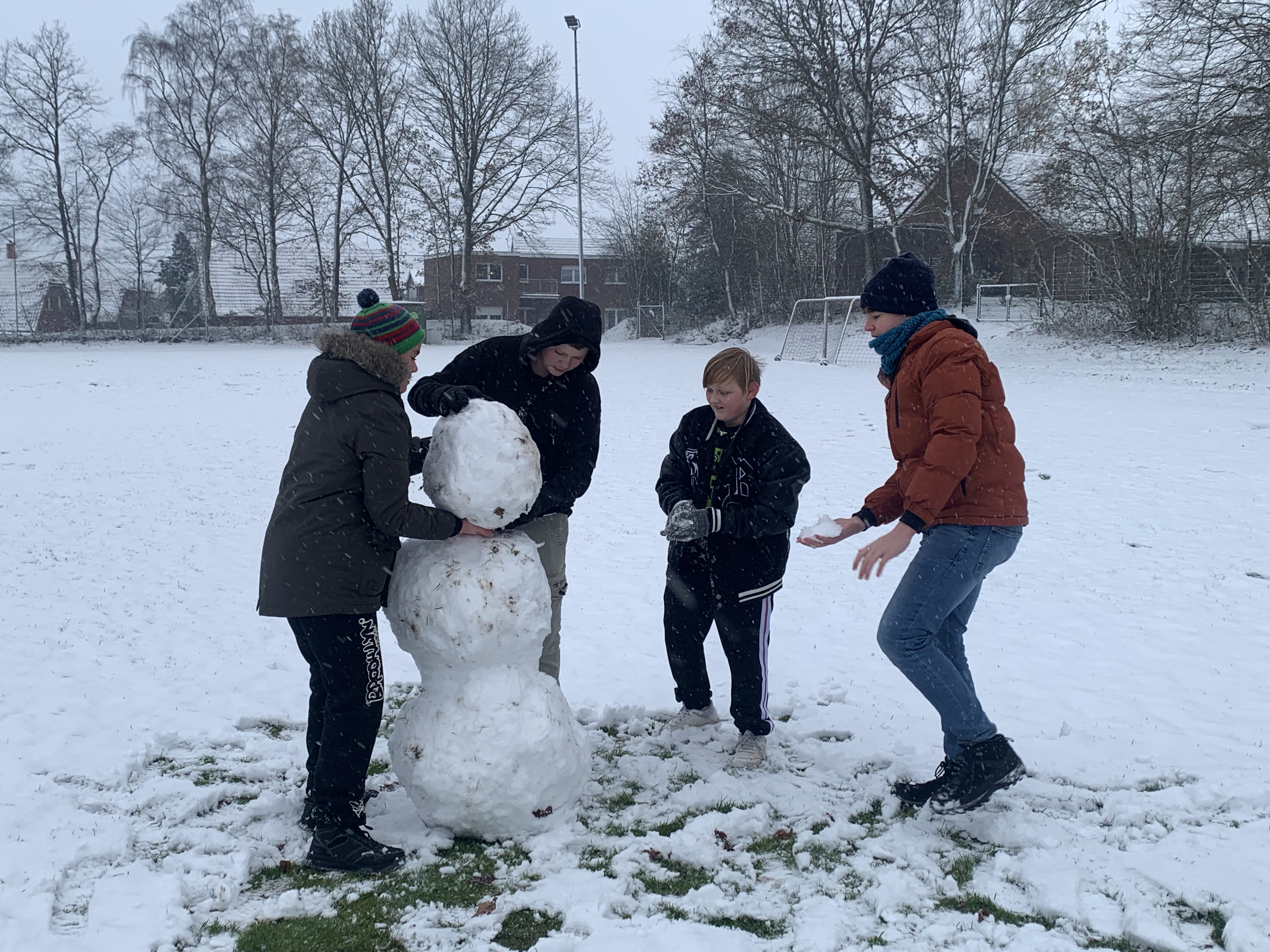 An der Oberschule Esterwegen hat es geschneit und die Kinder haben Schneemänner gebaut, haben sich gefreut und der Schulhof war voll mit Schnee.