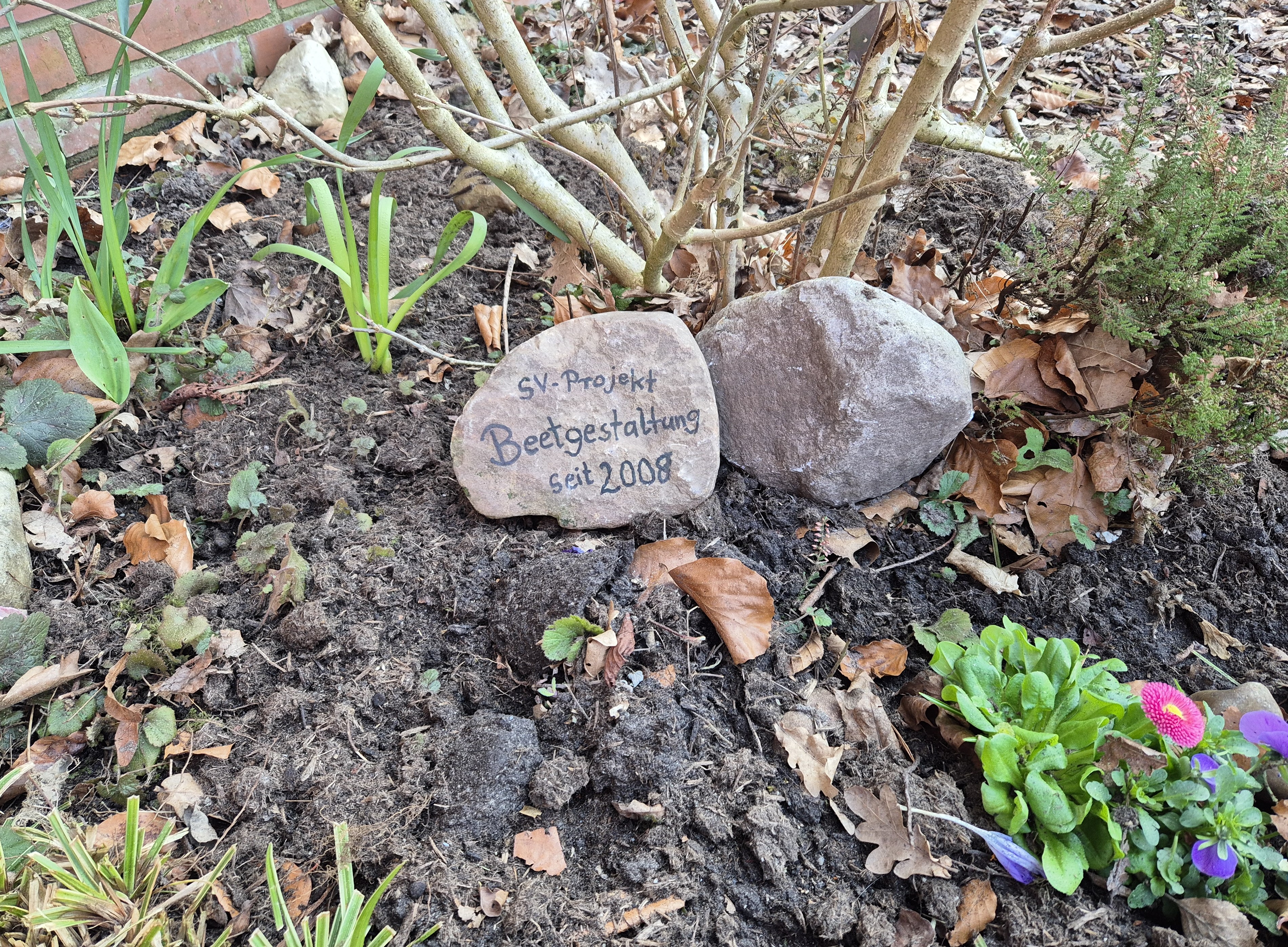 das Beet neben dem Eingang des Verwaltungsgebäudes ‚aufgeräumt‘ und mit blühenden Pflanzen neu bestückt.