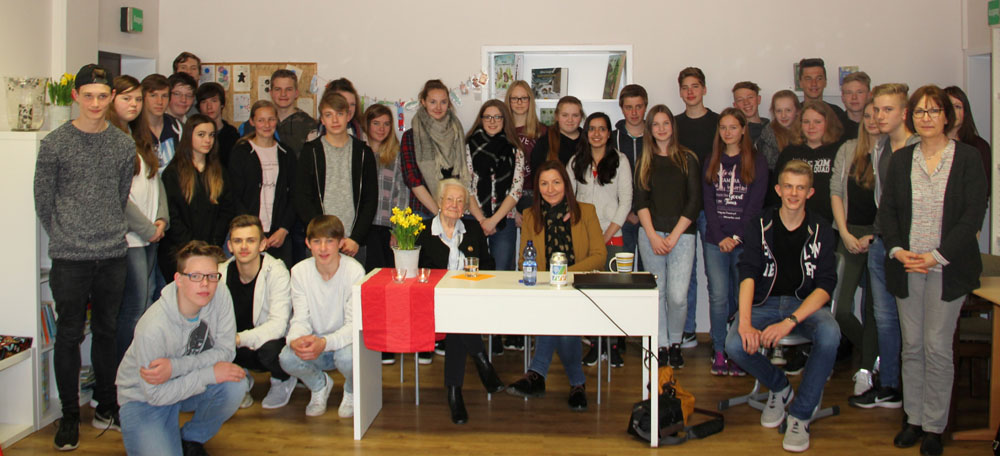 Die Holocaust-Überlebende Erna de Vries hat an der Oberschule Esterwegen den 9. Klassen ergreifend aus ihren Kinder- und Jugendjahren während der Nazi-Diktatur berichtet. Seit vielen Jahren erfüllt sie den Wunsch ihrer Mutter, die sich mit folgenden Worten im KZ Auschwitz-Birkenau von ihr verabschiedet hat: „Du wirst überleben und davon berichten, was sie mit uns gemacht haben“.