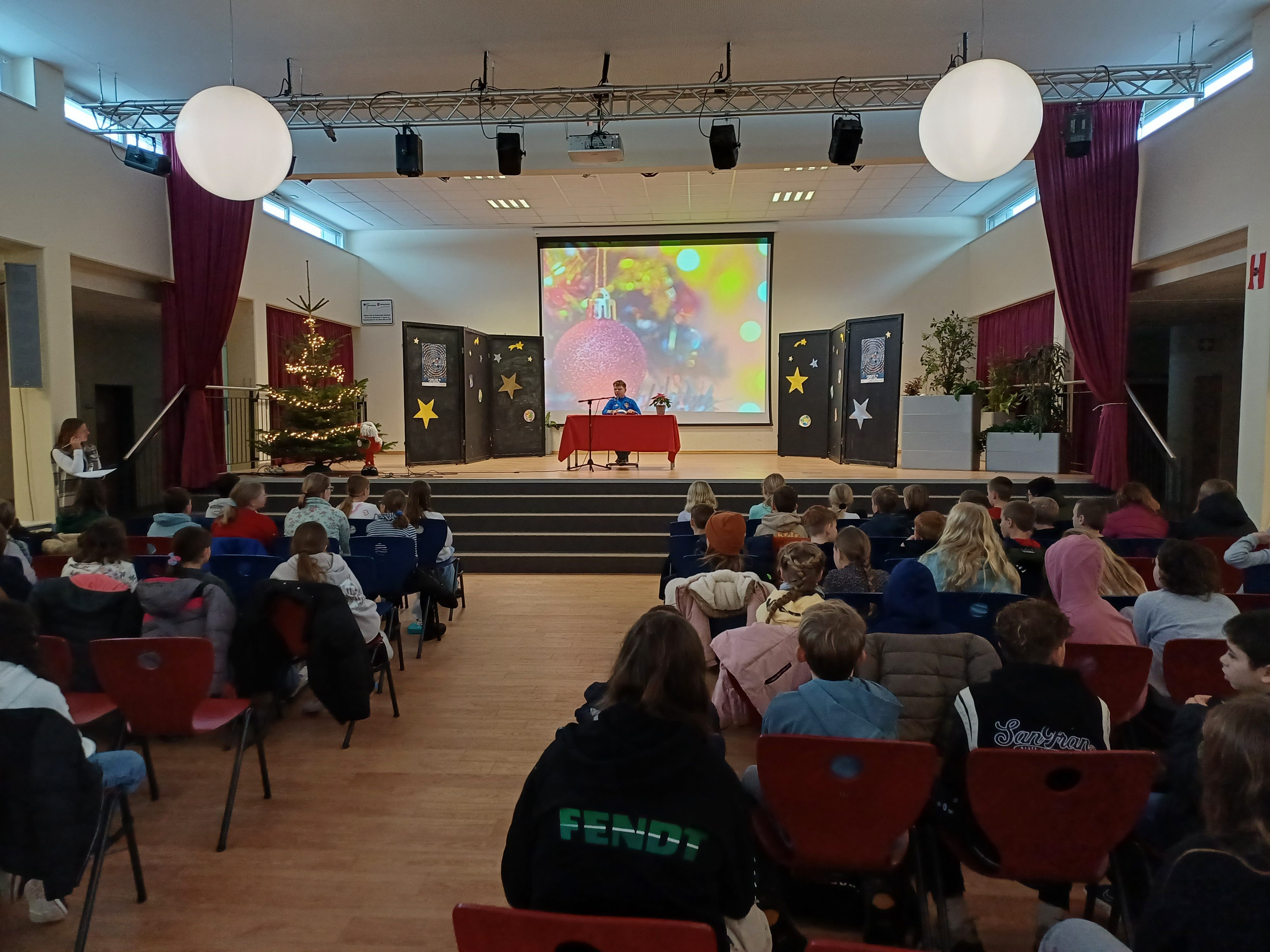 Rund 100 SchülerInnen der fünften und sechsten Klassen verfolgten aufmerksam den Schulentscheid des Vorlesewettbewerbes an der Oberschule Esterwegen. Für den entscheidenen Durchgang hatten sich jeweils 2 Klassensieger aus dem Jahrgang 6 qualifiziert: Leonie Meibers und Sophia Elisabeth Ihle aus der 6a sowie Luca Knelangen und Henri Pleiter aus der 6b. Sieger wurde Henri Pleiter. Er wird die Oberschule im Februar beim Kreisentscheid vertreten. Wir drücken ihm die Daumen!
