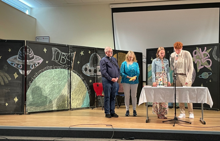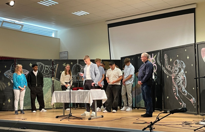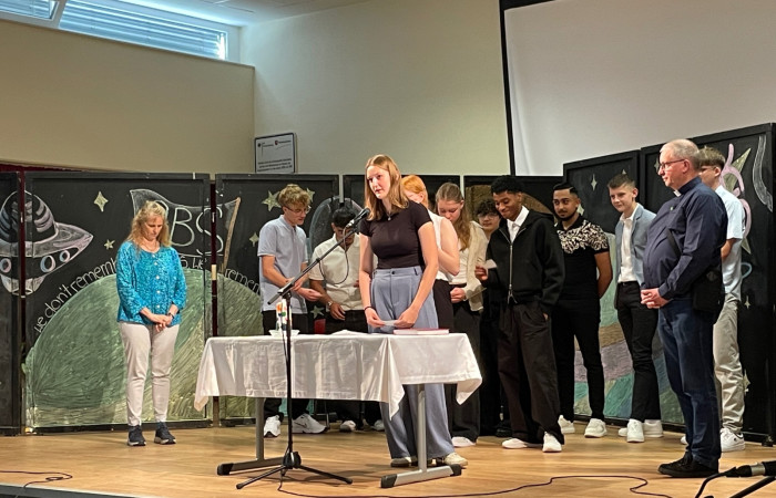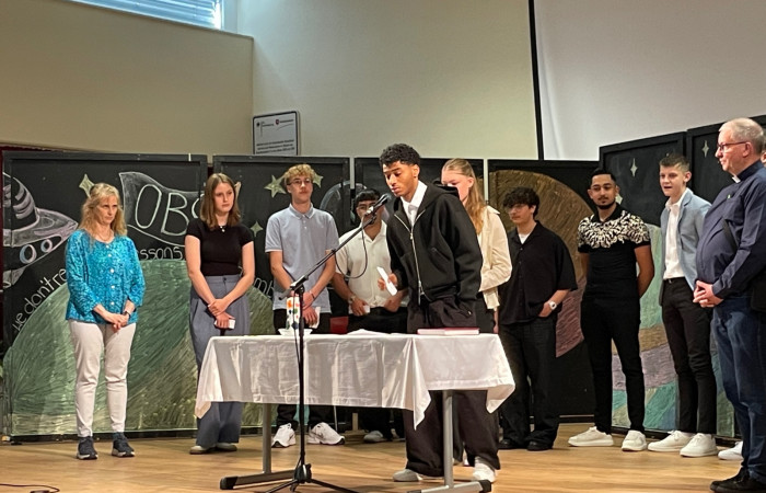 Ein ökumenischer Wortgottesdienst unter der Leitung von Pfarrer Michael Schiller und Diakonin Isabell Auffermann eröffneten die Feierlichkeiten in der Aula.