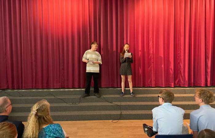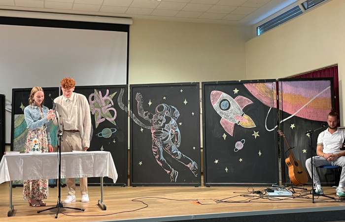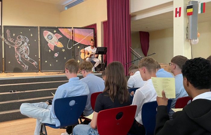 Auch ein Sketch mit dem „Blick ins Lehrerzimmer“, vorbereitet von der Gy 10, brachte die Aula zum Lachen.